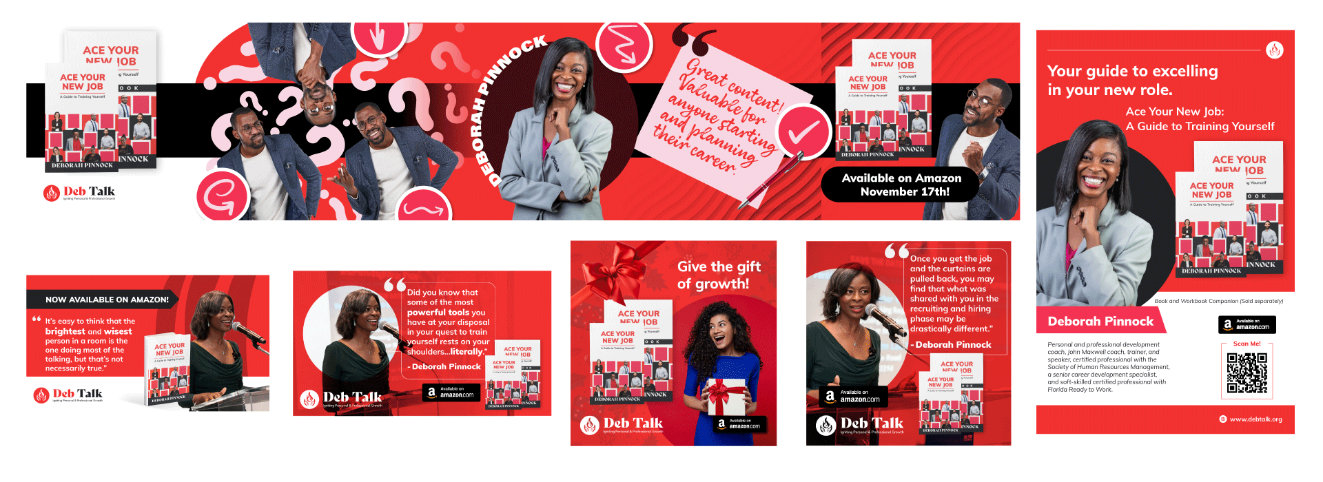 An integrated, storytelling-led campaign designed to promote Deborah Pinnock’s Ace Your New Job book through empowering visuals, digital content, and branded promotional assets that resonated with working professionals navigating career transitions.