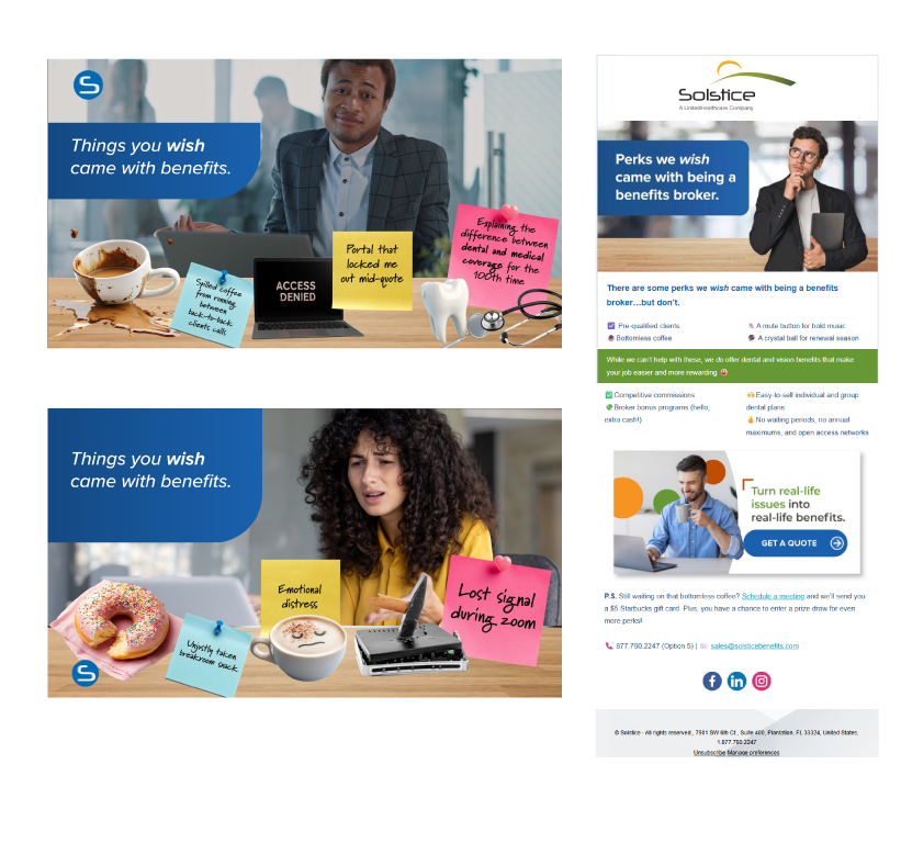 A humor-led digital engagement campaign designed to make benefits education more approachable for HR decision-makers through relatable messaging delivered across email, video, and static digital ads.
