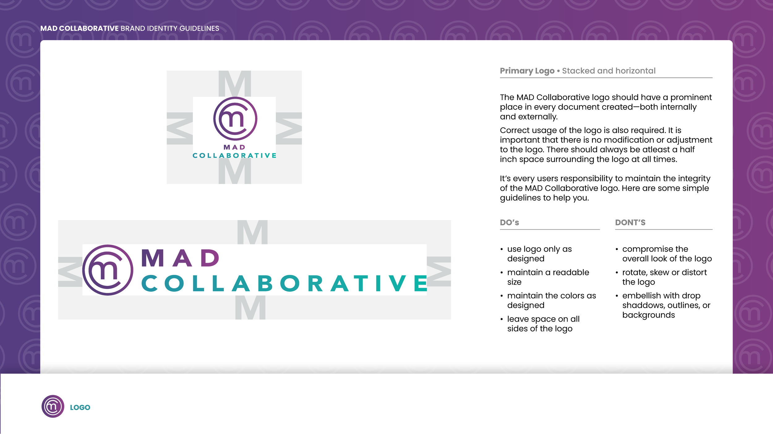 The MAD Collaborative brand was designed to reflect a friendly yet professional identity, highlighting the adaptability and expertise this consulting firm brings to business strategy, change management, customer experience, and technology innovation. The brand's flexible nature mirrors the dynamic solutions MAD Collaborative provides, positioning them as trusted advisors in helping businesses evolve and thrive.